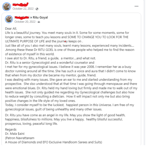 I'm a Gynaecologist & spiritually grounded "Women Happiness Coach". Clinical experience of more than 20 years has helped me connect with thousands of Women in close association and serve them. While working with women from all walks of life, seeing their sufferings in all areas physical, mental & emotional for many years I thought There must be a better way of living, Also As a gynecologist, we often have to work odd hours with a compromise on health & family time & started learning new & new things from various mentors & came to know many facts which are responsible for our life situations, the more I learned about all this more I was fascinated. And then decided to help Women learn these life lessons in an easy way so that they can enjoy their lives and enjoy Happiness and Joy In all areas of life.
